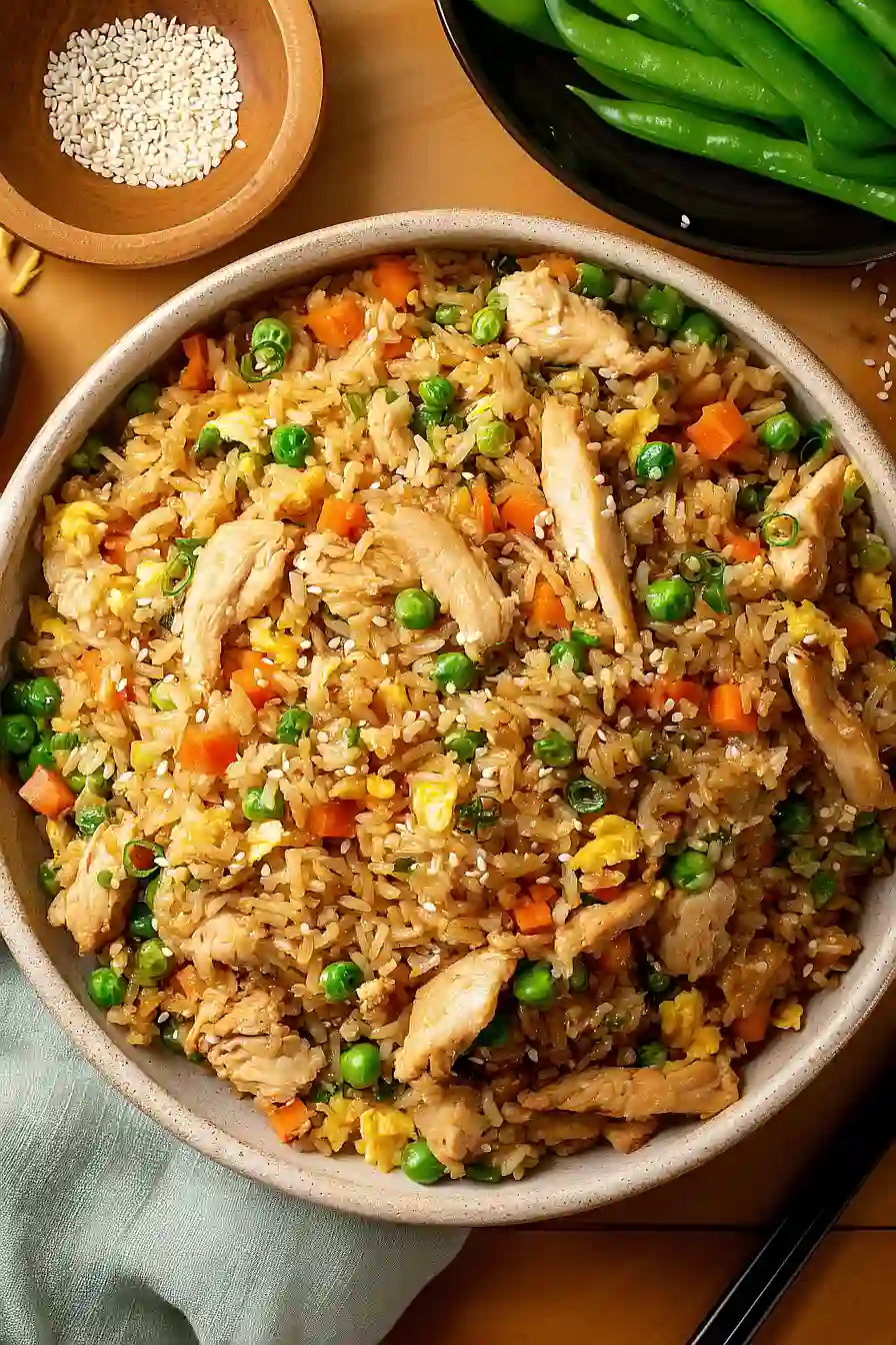 Chicken fried rice is pretty filling on its own, but I love pairing it with some simple sides that add different textures and flavors to the meal. A quick cucumber salad with rice vinegar and a touch of sugar cuts through the richness of the fried rice perfectly, or you could go with some steamed broccoli drizzled with a bit of soy sauce. If you want to make it more of a feast, add some crispy egg rolls or spring rolls on the side for dipping into sweet and sour sauce. For soup lovers, a light egg drop soup or hot and sour soup makes a great starter that won’t leave you too stuffed to enjoy the main dish.