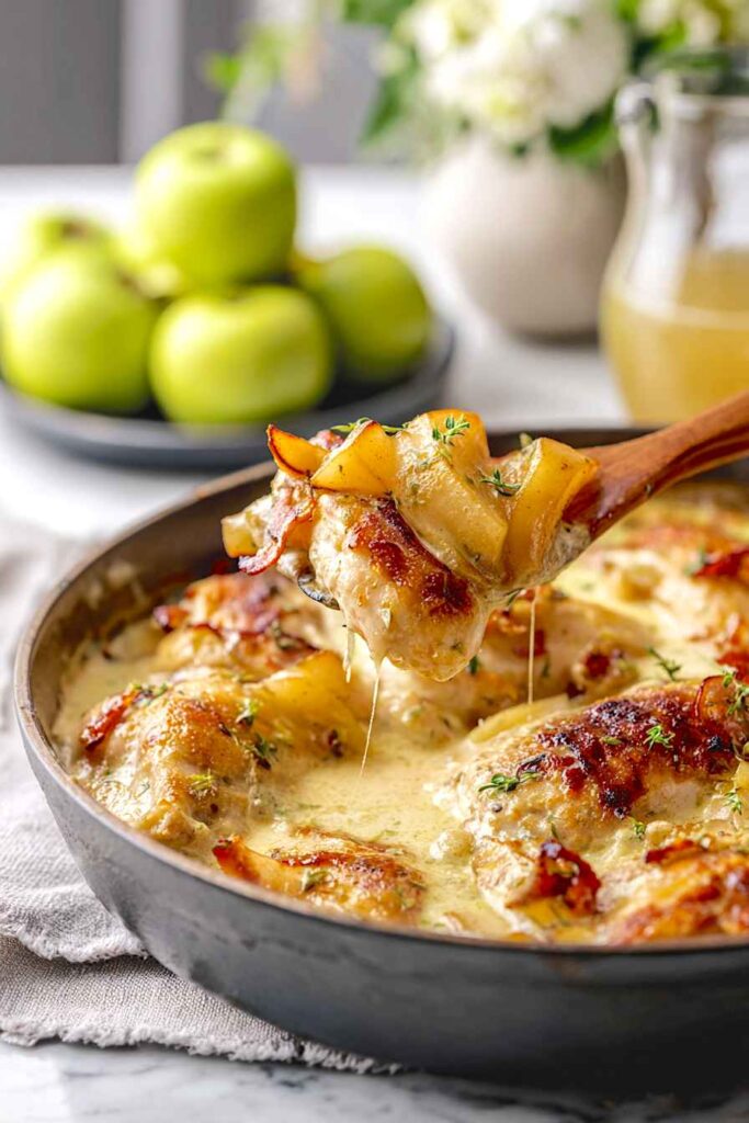 - Rich, creamy sauce – The combination of hard cider, brandy, and heavy cream creates a luxurious sauce that coats the tender chicken perfectly.