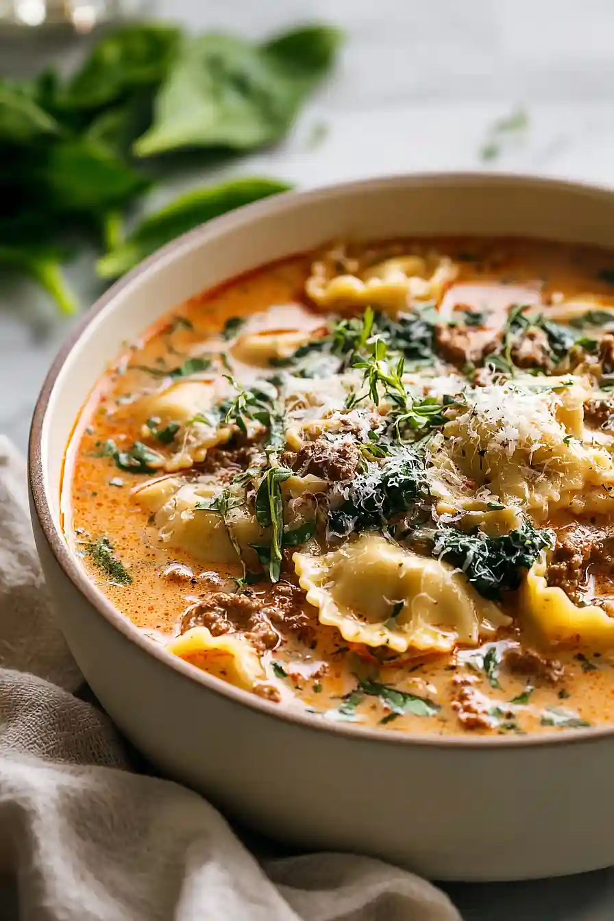Ground Beef Lasagna Soup with Spinach