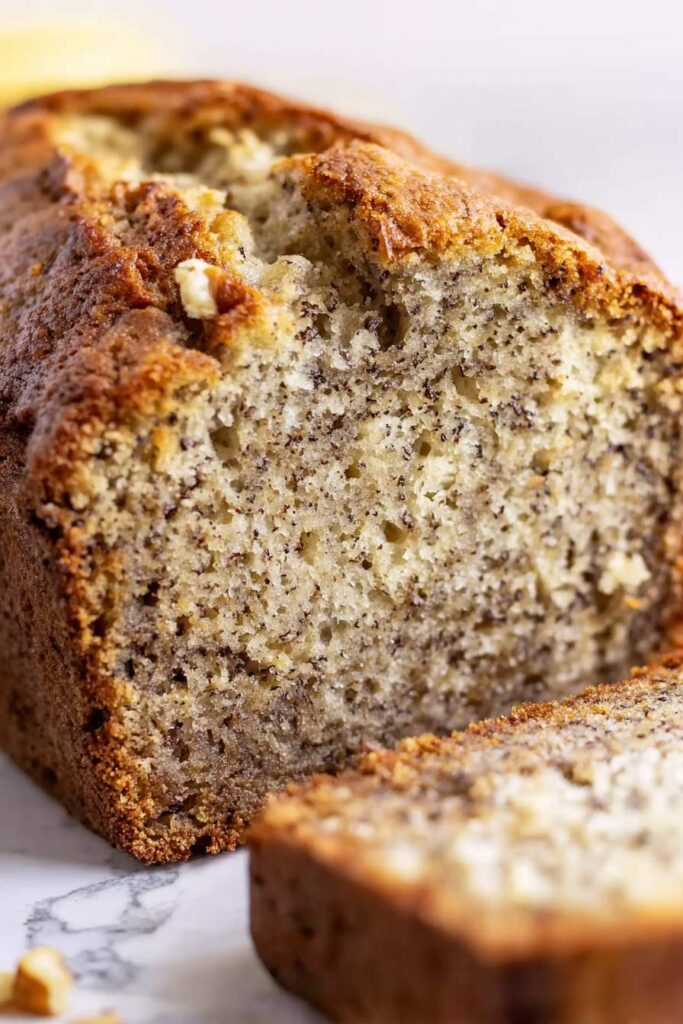 - Moist and tender texture – The combination of butter and ripe bananas creates a perfectly soft, cake-like bread that stays fresh for days.