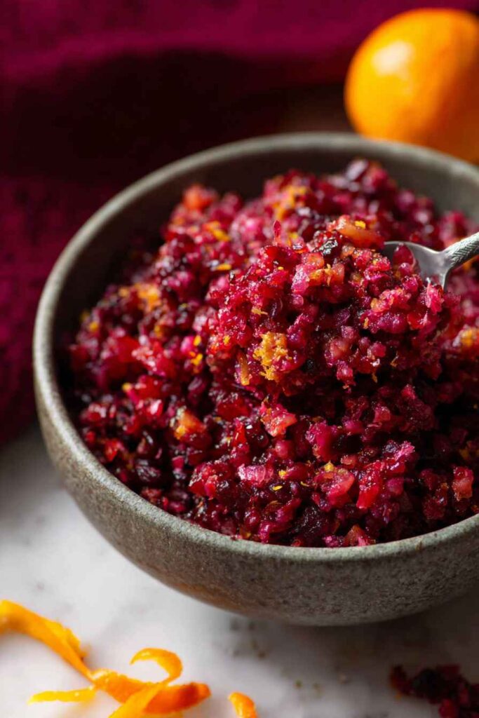 - Fresh cranberries: Fresh cranberries are really the star here and shouldn’t be substituted – they give that perfect tart bite and texture that makes this relish special.