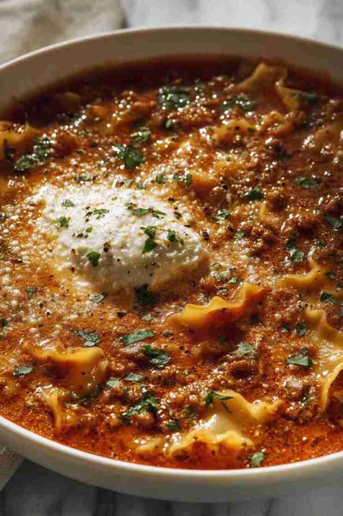 This comforting soup brings all the flavors of classic lasagna into a simple, weeknight-friendly bowl. Rich tomato broth mingles with tender pasta, creamy ricotta, and melted mozzarella cheese.