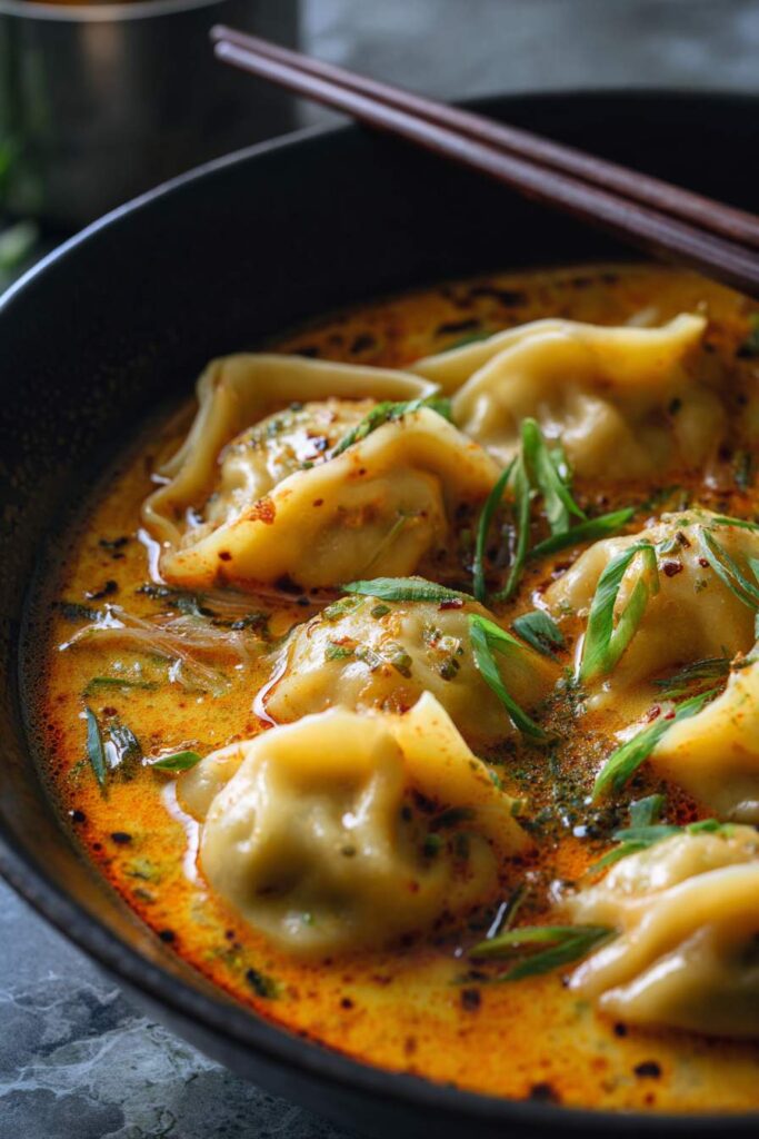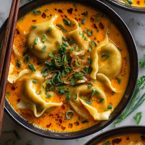 This soup is pretty filling on its own thanks to the dumplings, but I love serving it with some steamed jasmine rice on the side if I’m extra hungry. A simple cucumber salad with rice vinegar and sesame oil makes a nice refreshing contrast to the rich, creamy coconut broth. If you want to add more veggies to your meal, some quick stir-fried bok choy or snap peas seasoned with a bit of soy sauce and ginger work really well. For a crunchier option, try some crispy spring rolls or vegetable tempura that you can dip right into the soup.