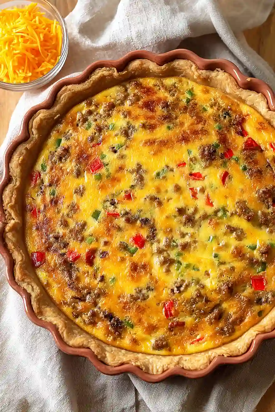 For this quiche, you can use either regular or hot breakfast sausage depending on how much heat you like. The regular breakfast sausage gives you all that savory, herby flavor without any spice, while the hot version adds a nice kick that pairs really well with the peppers and onions. I usually go for a good quality pork breakfast sausage that comes in a roll or tube form, which makes it easy to crumble as it cooks. If you want to switch things up, Italian sausage (mild or spicy) also works great here and brings a slightly different flavor profile with fennel and other Italian seasonings.