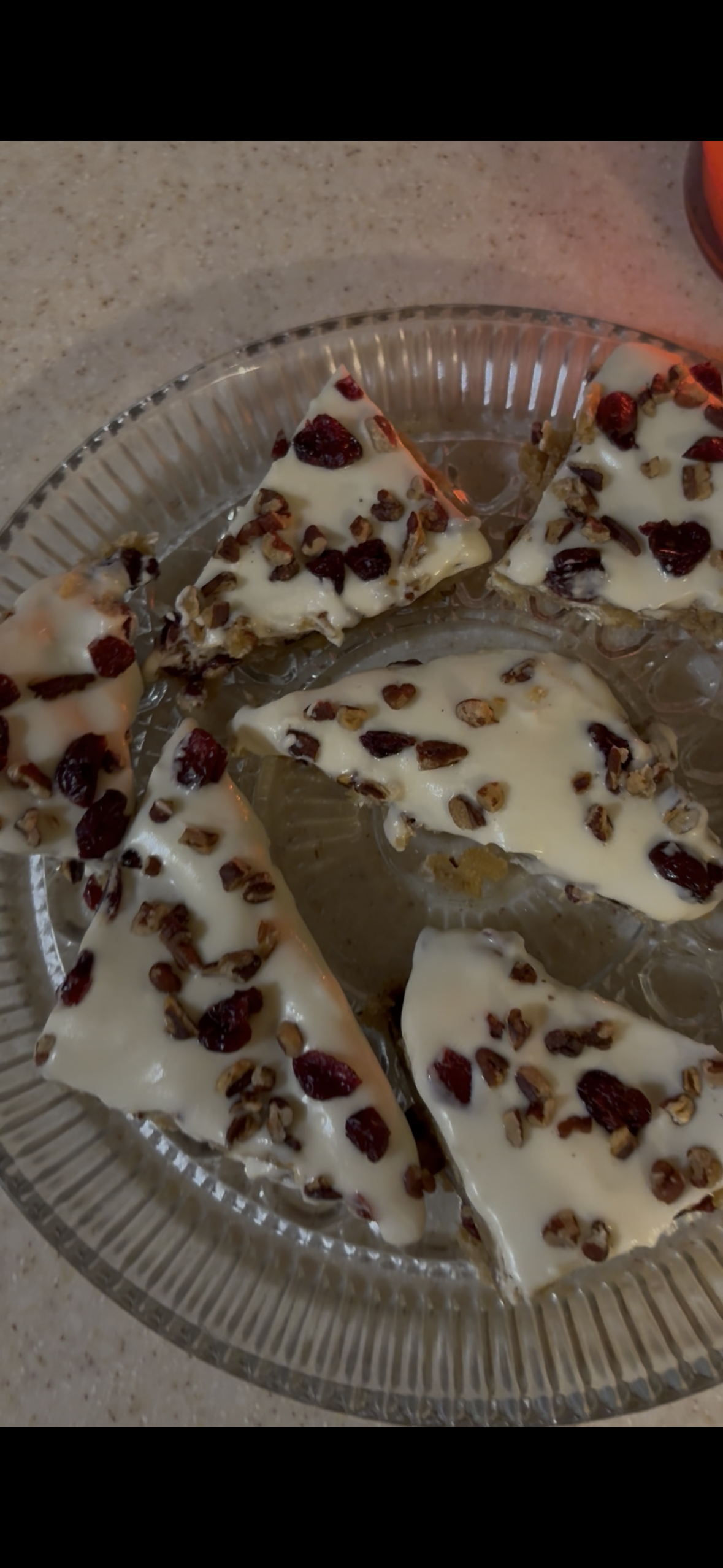 The white chocolate is typically meant to be melted and then drizzled on top of the frosting then sprinkled with cranberries.
